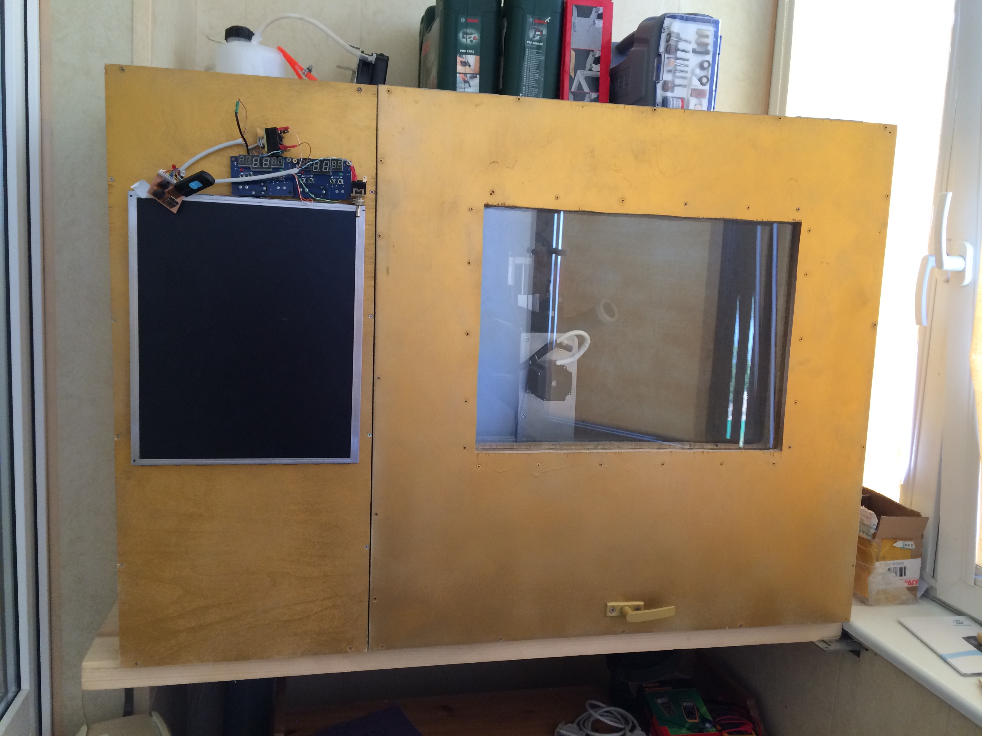 Сначала собирал "домик для станка", от души наразвлекался с газовыми упорами двери и размазыванием электроники и питания по стенкам ящика.