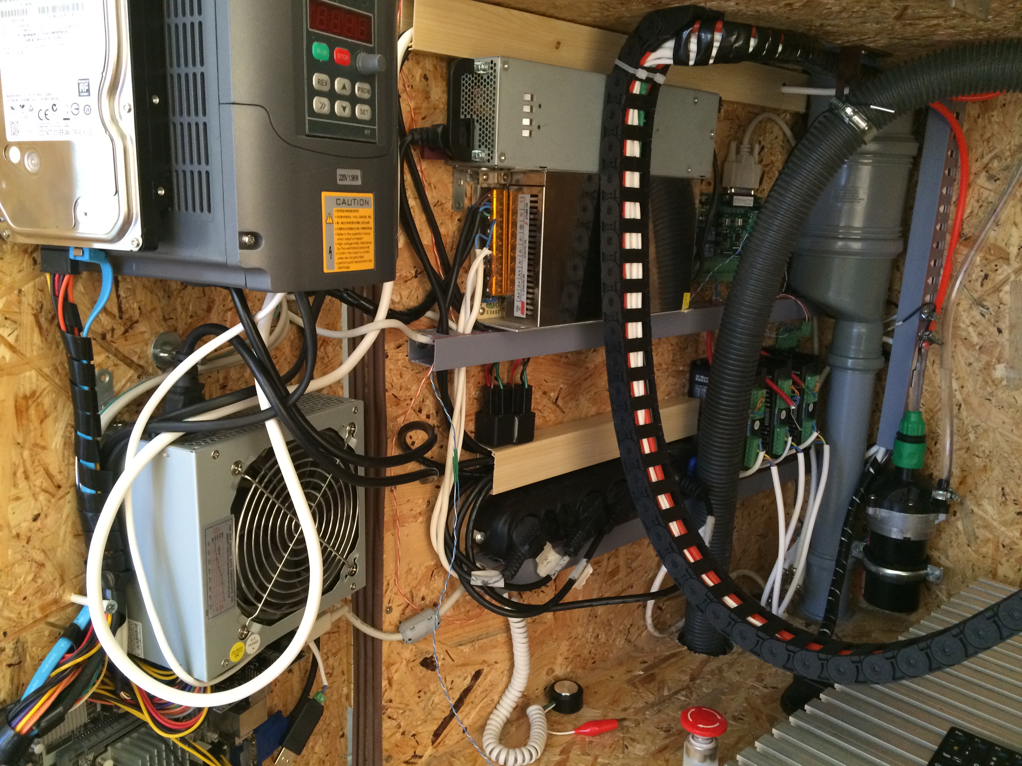 Приехал шпиндель с инвертором, началась следующая серия "марлезонского балета". Строители... они... хорошие люди, старались, сделали неплохо. Но кто же знал, что они на себя повышенные обязательства возьмут и оптимизацией электрики займутся... Притащил кабель от нетронутой розетки.