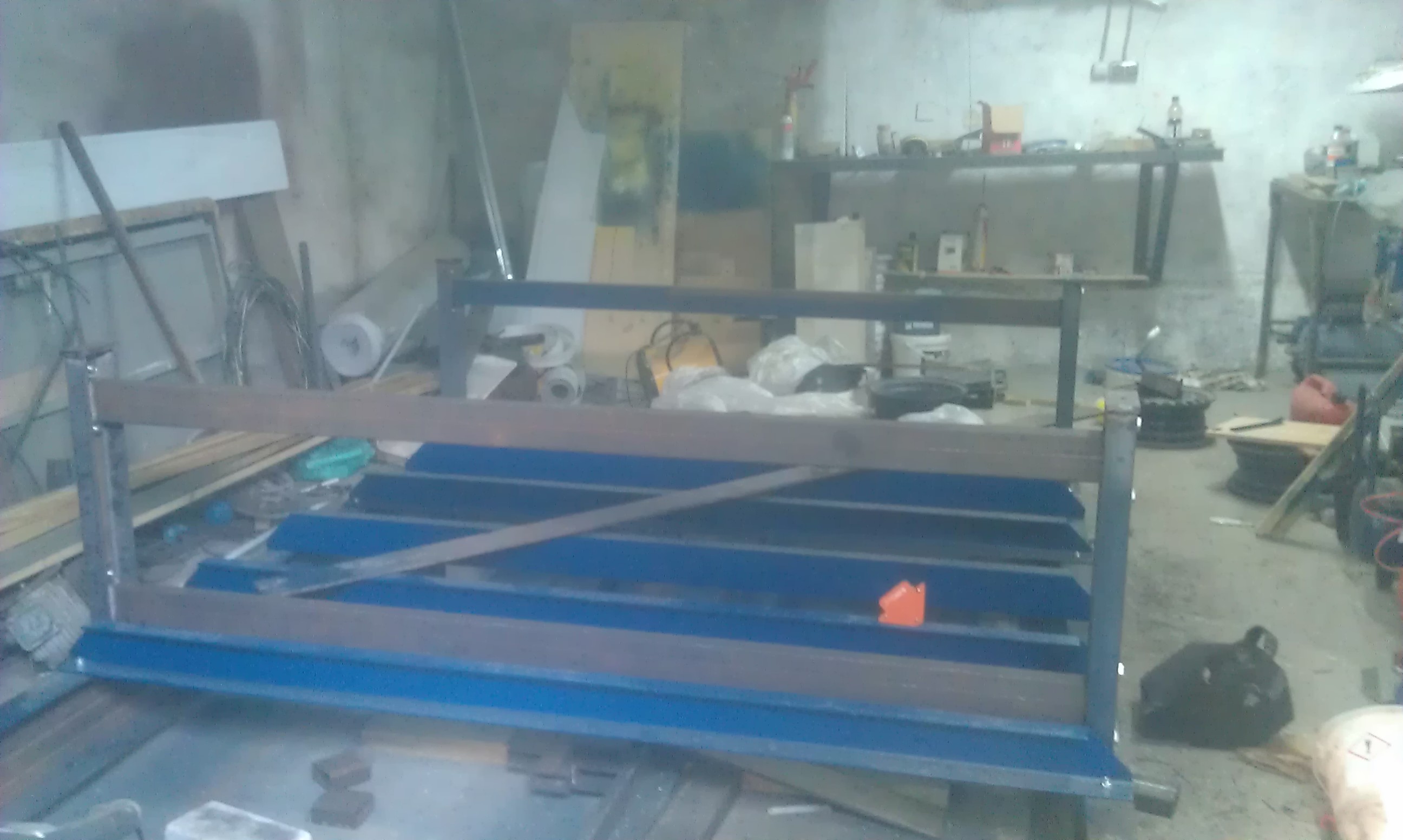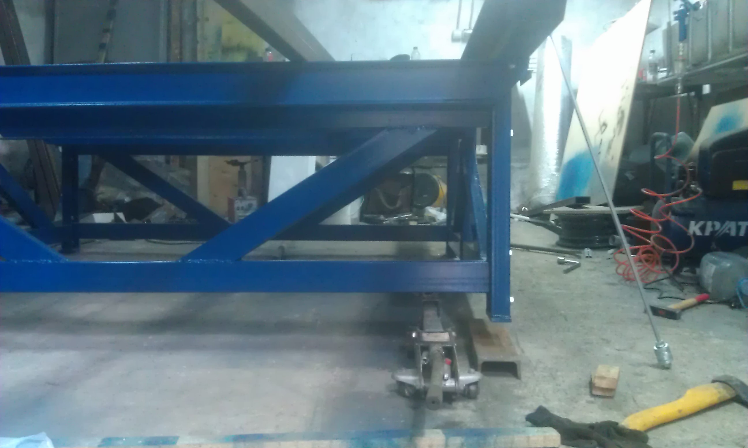 под потолком есть рельса, думаю к ней привязать и поднять станок, что бы залить платформу