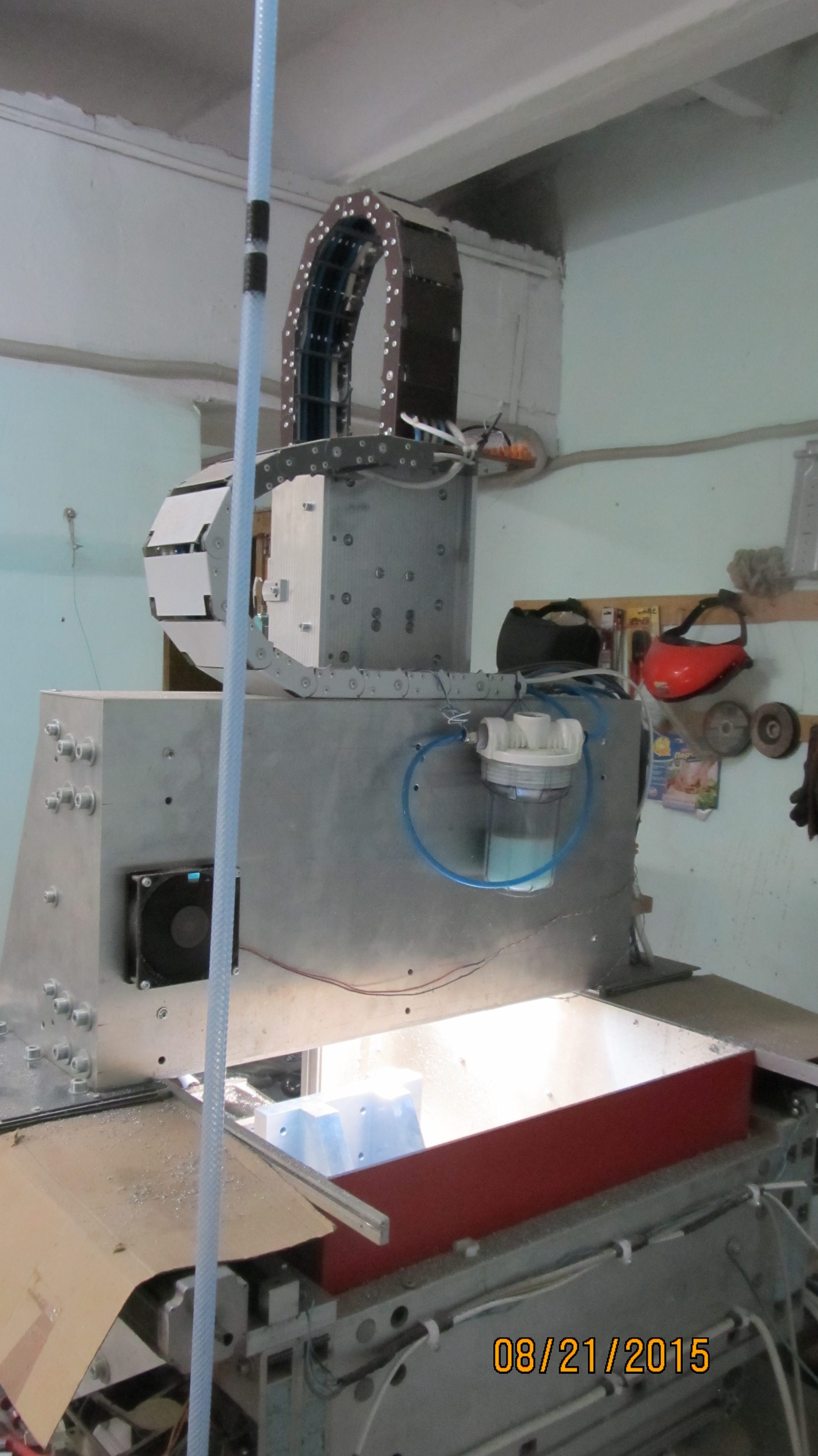 Это последний малыш, когда-то мой друг начинал делать, но так и бросил незаконченным, сейчас взяли себе помощника-студента, чтоб не гробить нормальные станки, дособрали этот - пущай тренеруется. Ничего особенного нет, но фрезерует понемногу, основы арткама и павермила на нем подучить вполне реально да первые шишки набить.