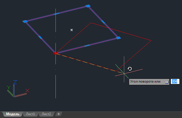 Если нужно повернуть объект в другой плоскости, то меняем направление оси Z (рисунок 2).
