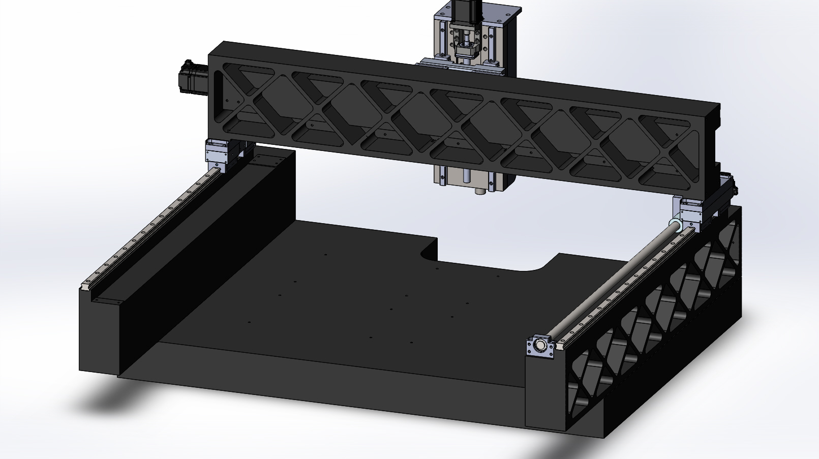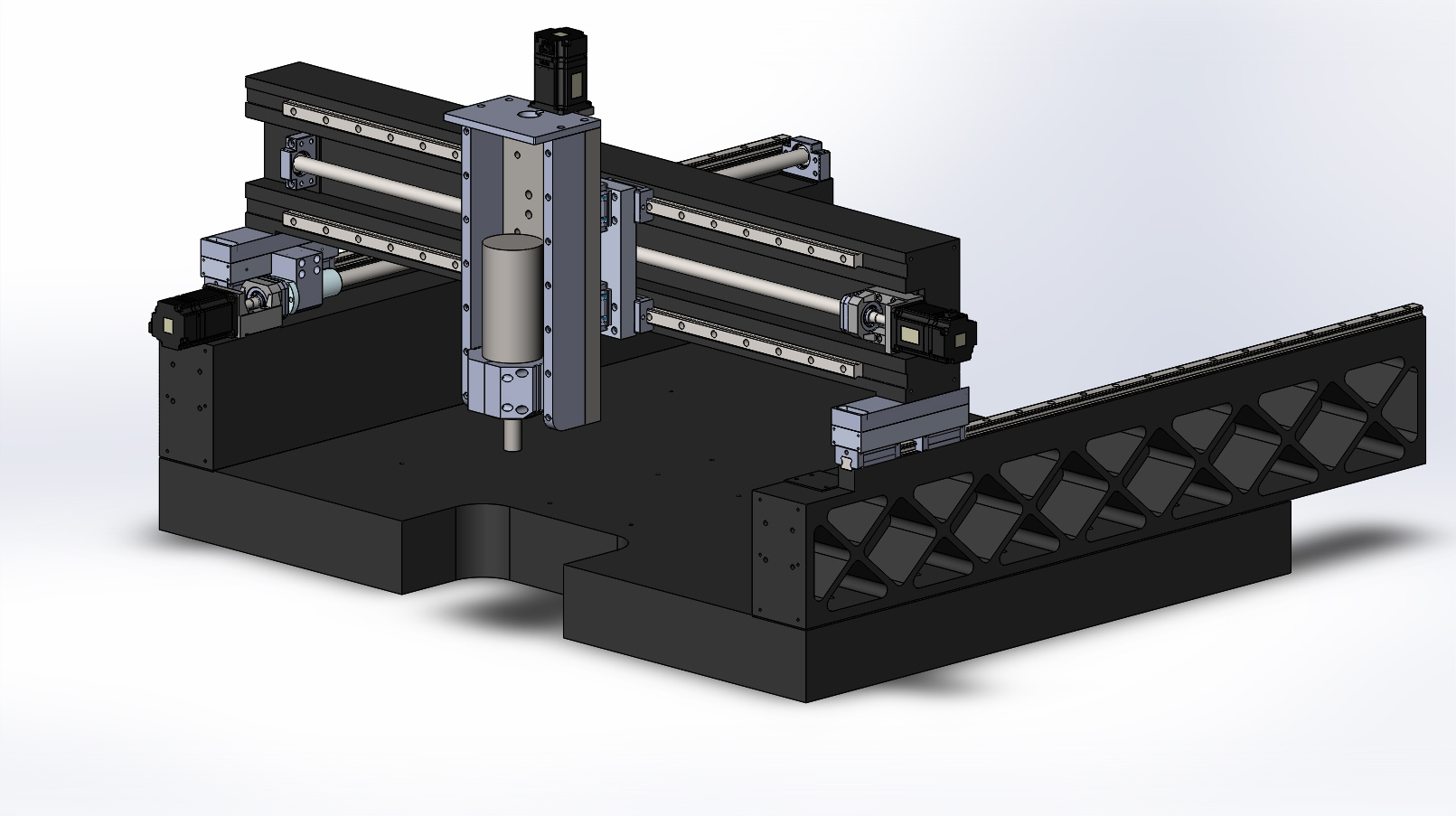 При такой конструкции шпиндель с инструментом неможет подниматся на уровень нижней кромки портала. В самой верхней точке от нижней кромки портала до конца инструмента будет примерно 100мм которые при классической конструкции могли бы быть либо дополнительной высотой обработки либо при тойже высоте оброботки позволяют опустить портал ниже на эти 100мм. Считаю что конструкция с рельсами на шпиндельной плите актуальна для жестких станков с большим ходом по Z а до 300мм хода у нее больше минусов чем плюсов. Главный минус что портал выше на 100мм чем мог бы быть второй минус это следствие первого при обработке невысоких деталей минимальная жесткость а максимальная жесткость в верхнем положении но большая часть обработки идет на столе внизу.