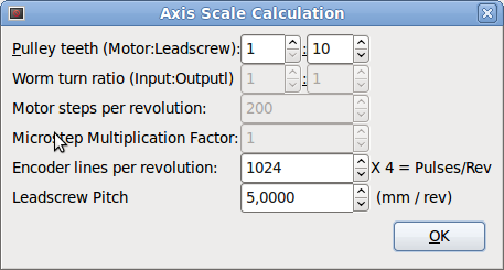 Наиболее красивым решением данный проблемы мне видится обмануть pncconf и сказать, что шаг ШВП у меня не 10 мм, а один. В то же время отношение Мотор:Ходовой винт установить в 1:1.