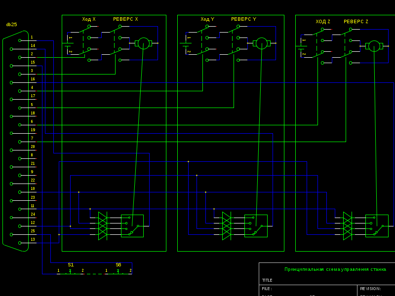 Вот облегченная принципиальная схема станка.Вместо РД09 нарисовал движки постоянного тока.
