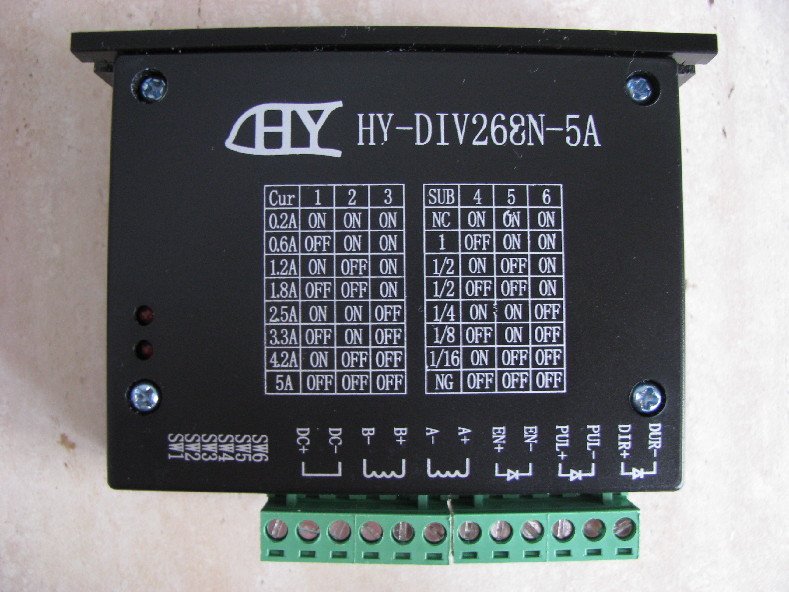 Как приехали движки решил сразу проверить и драйвера и двигатели. Настроил в Mach 3 ось Х, подключил один драйвер (чтоб не городить путаницу из проводов) к контроллеру, подключил ШД, проверил правильность подключения и полярности аж 4 раза перед подачей питания на драйвер. БП 36в, 10А, 350 ватт (в наличии 2 БП, по 2 драйвера на один блок). DIP-переключатели выставил пока вот так Включил - двигатель становится на удержание, из Mach 3 - крутится, с клавиатуры крутится. Вроде бы все отлично, НО.... На двух из четырёх драйверов не горят диоды-индикаторы питания на плате. Драйвера подключал по очереди просто переставляя съёмные клемники с одного на другой (при выключенном питании естественно). В общем всё работает но вот две "лампочки" не светят. Что это может быть??? Хреновые диоды? Китайцы "ноги" перепутали? Чем это чревато?