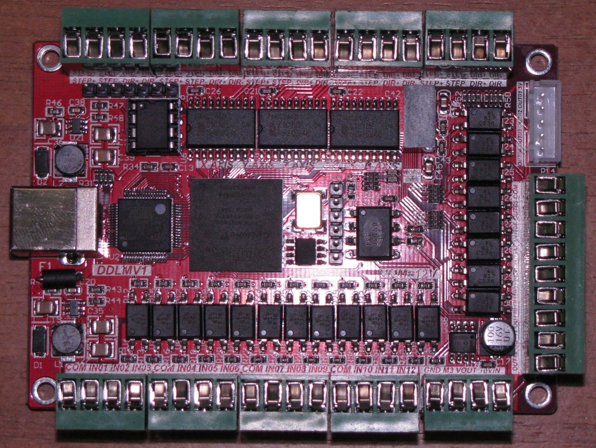 Доброго времени суток, уважаемые форумчане! Давно читаю ваш форум, не без пользы конечно. Собрал себе небольшой станочек с полем 1100х850 мм, осталось дождаться ШД, драйвера и шпиндель из Китая. На днях получил интерфейсную плату под кодовым названием DDLMV1 и по ней возникло несколько вопросов. Очень уж не хочется при первом запуске станка оказаться в облаке синего дыма))) В одной из тем на форуме AlexSVC тестировал данную платку, но по подключению её особо нет никакой информации. В принципе по подключению драйверов тут всё предельно просто. Есть сомнения в том правильно ли я решил подключать индуктивные датчики со стопами и вопрос по выходам на реле.