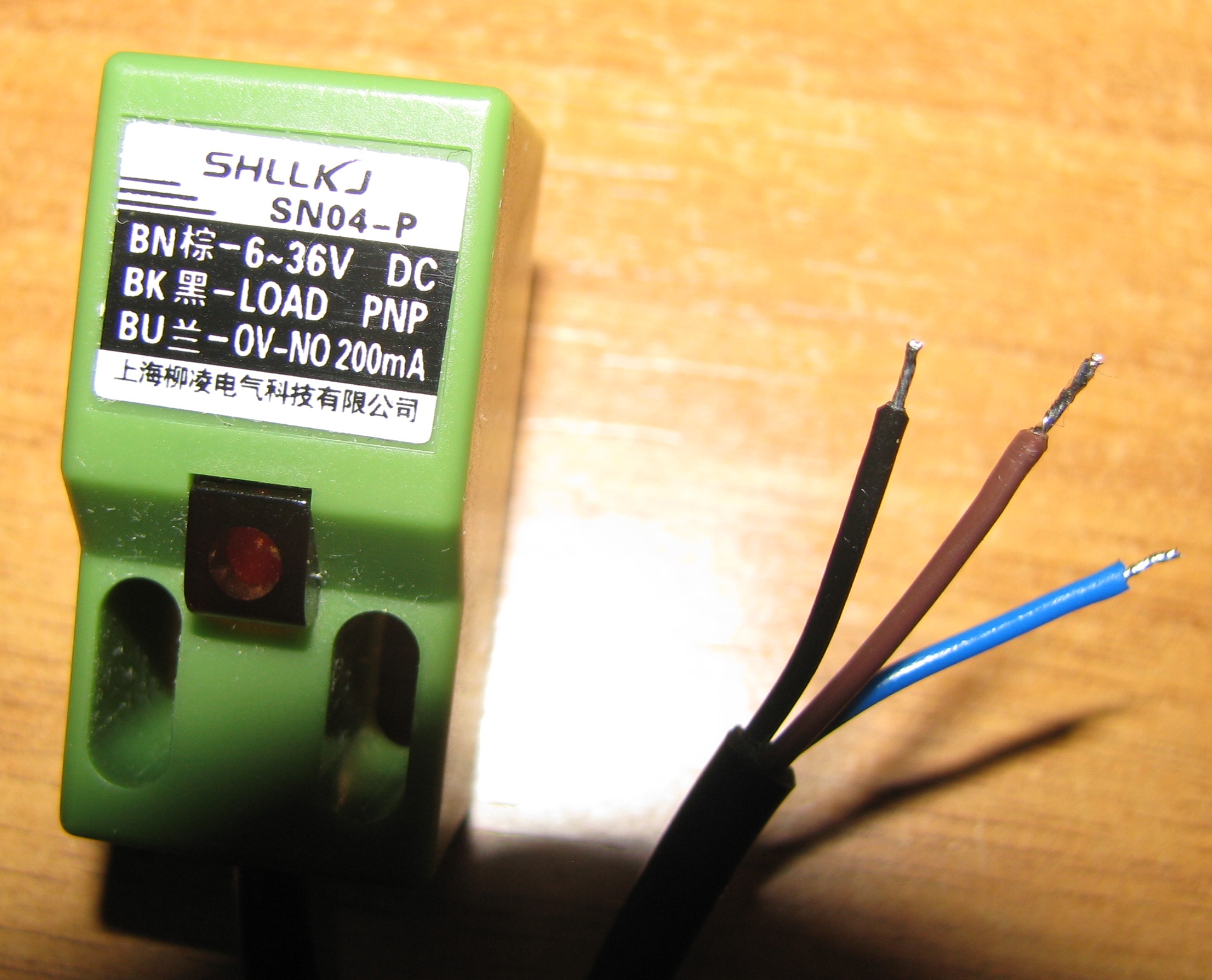 "Ковыряние" началось с прописывания пинов концевых датчиков и стопов с последующим замыканием контактов COM и входов контроллера куском провода с открытым в Mach 3 экраном диагностики. При замыкании контактов желтые квадратики напротив лимитов исправно загорались. Тогда исходя из скудной информации предоставленной в мануале и надписи на самом контроллере COM=12V ( кстати китайской пайки без фото не заметил бы))) было решено подключить индуктивные датчики с внешним блоком питания на 12v 2A. Датчики по прибытии из Китая были проверены на работоспособность. Датчики PNP-типа нормально-разомкнутые. Коричневый провод "+" , синий провод "-", черный - нагрузка (load). Исходя из того что PNP датчик посылает на сигнальный провод "+" своего питания, на входящие пины COM был подключен "-" от БП 12V. Все датчики отлично срабатывали. Схема подключения расположенная в топике темы, правильная для PNP-датчиков. Для датчиков типа NPN на COM-входы контроллера следует подавать "+" от БП. Кнопки E-Stop были подключены на 4-ю колодку без дополнительного питания.