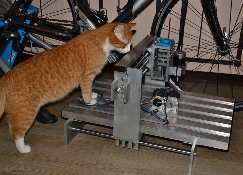 Была возможность пощупать ЧПУ станочек, весь из дюрали, портального типа, рабочее поле 400х300х70. Станок заброшенного типа, начали но до конца не доведенный разочарование, забросили и забыли И теперь он стоит дома у меня в качестве наглядного пособия :hehehe: . Казалось бы, а почему бы не довести до ума?